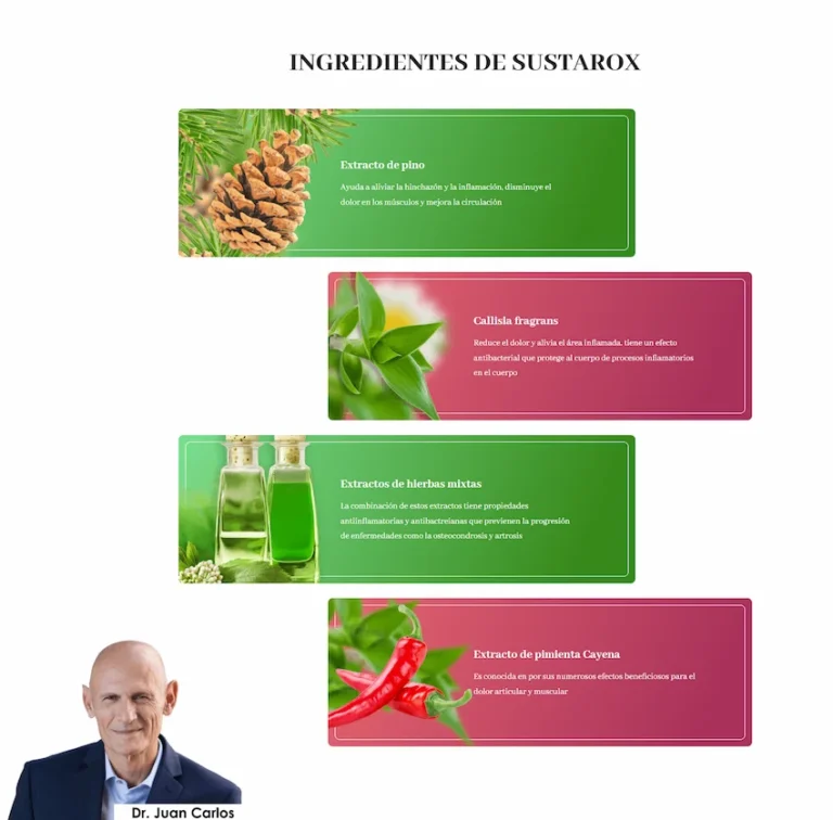 (Nota rápida: a continuación, te daré todos los detalles sobre los ingredientes, los beneficios, los testimonios y los posibles efectos secundarios de Sustarox™).